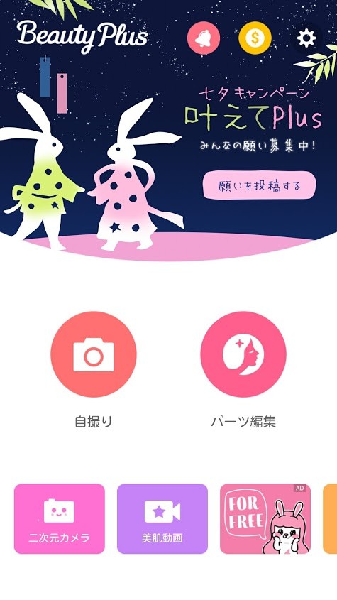 「BeautyPlus」では自撮りに必要な機能をたくさん兼ね備えた