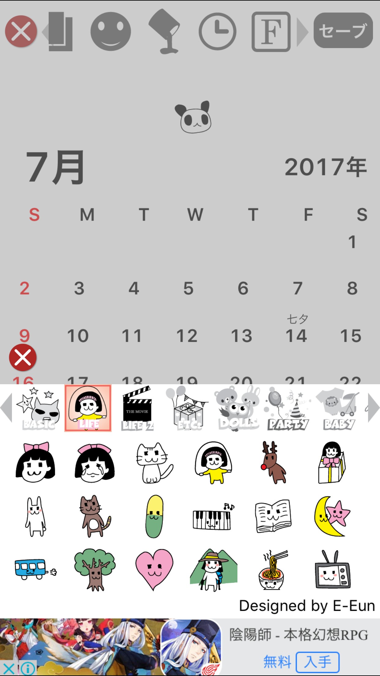 手順2.画面上の装飾アイコンをタップし、各装飾後に画面右上の「セーブ」ボタンをタップ