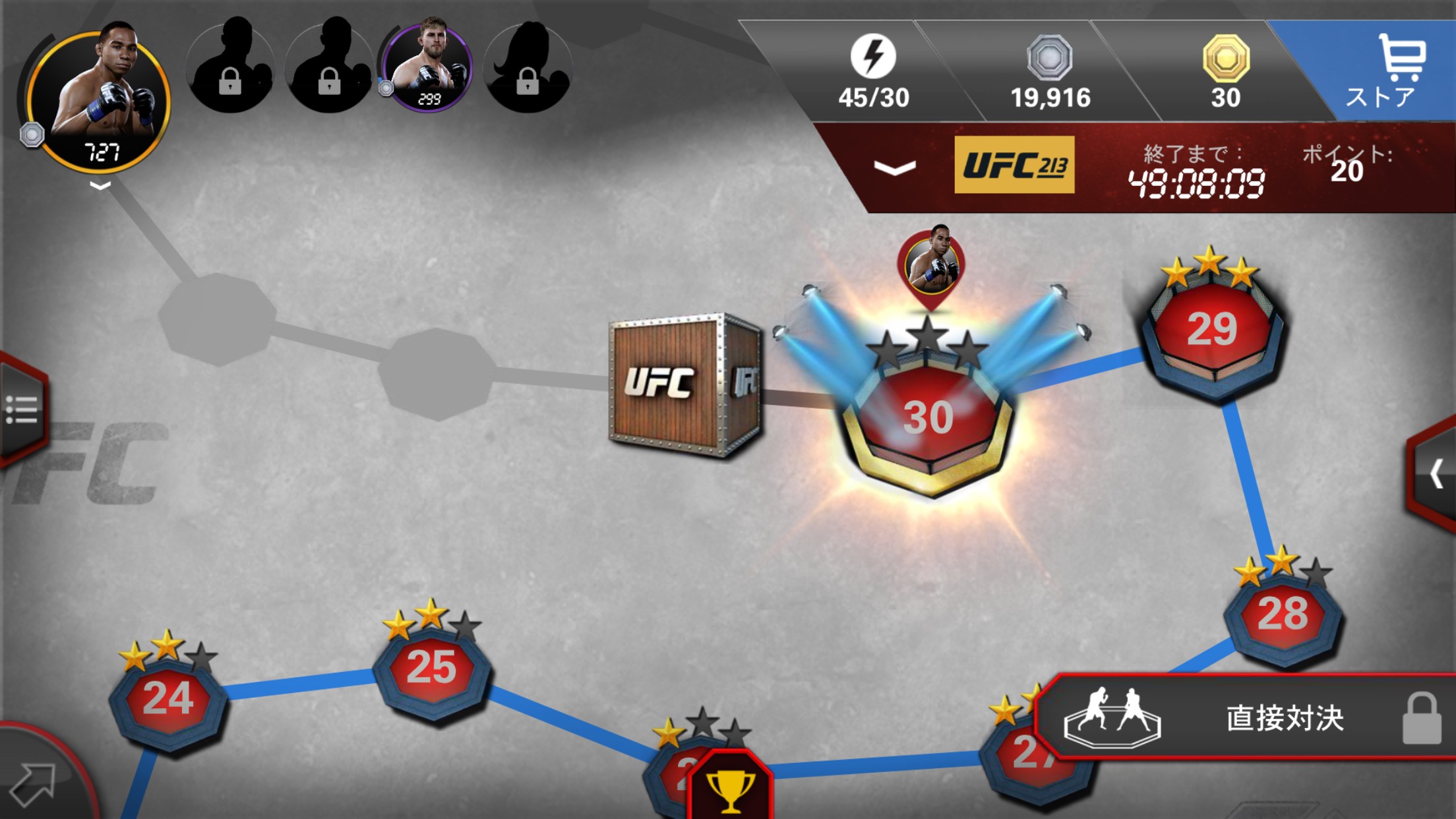 すべての階級のファイターを揃えると、別のユーザーとの直接対決が行えるようになります。
