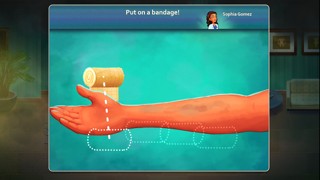 キャラクターを動かすだけではなく、包帯を巻いたり、ギブスを削ったり、聴診器をあてたりすることもできるのが楽しいです。時間をかけずにスムーズにこなさないと他の患者さんの機嫌を損ねてしまうので注意です。