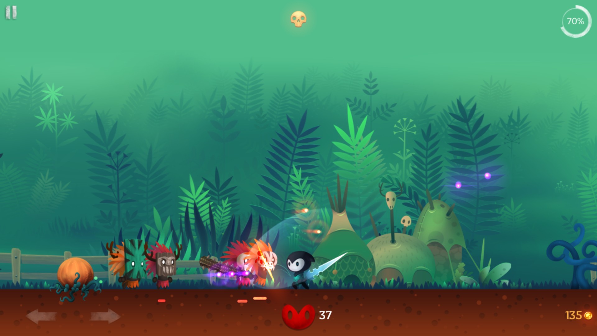 リーパーはダークな世界観のストーリーが魅力的でありながらも、バトルも爽快感のあるアクションが楽しめます。操作方法は画面の左端をタップで後退、その横をタップすると前進です。