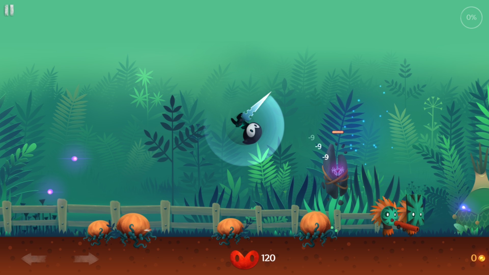 敵の数が多いステージもあって、回転斬りでザクザク倒していくのは気持ちいいです。敵の攻撃をもらったり穴に落ちたりすると体力が減るので気をつけましょう。0になると失敗になってしまいます。