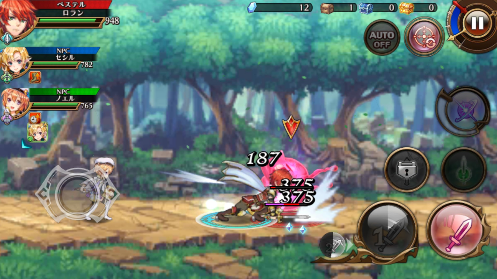 攻撃の右には数字がついたアイコンがいくつか見えます。これはスキルで例えば1であれば1度通常攻撃をしたあとにそのスキルを押すことで発動できます。2であれば通常攻撃を2回した後にタップです。