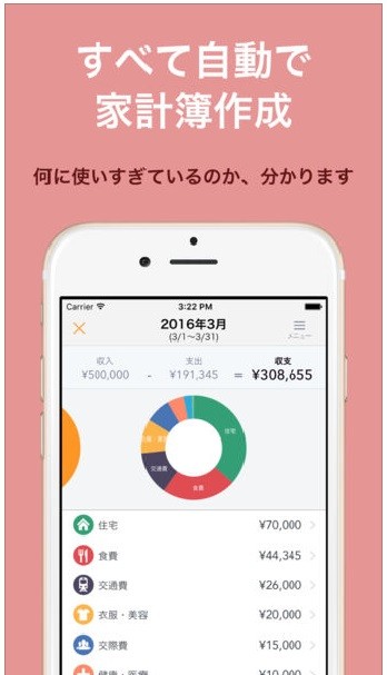 - 自動で分類できて家計簿が楽々つけられる