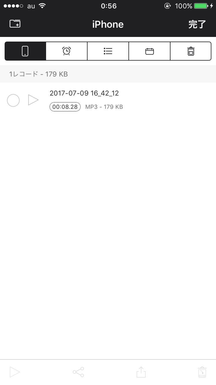 録音したファイルを再生する画面がこちらです。(上記画像)