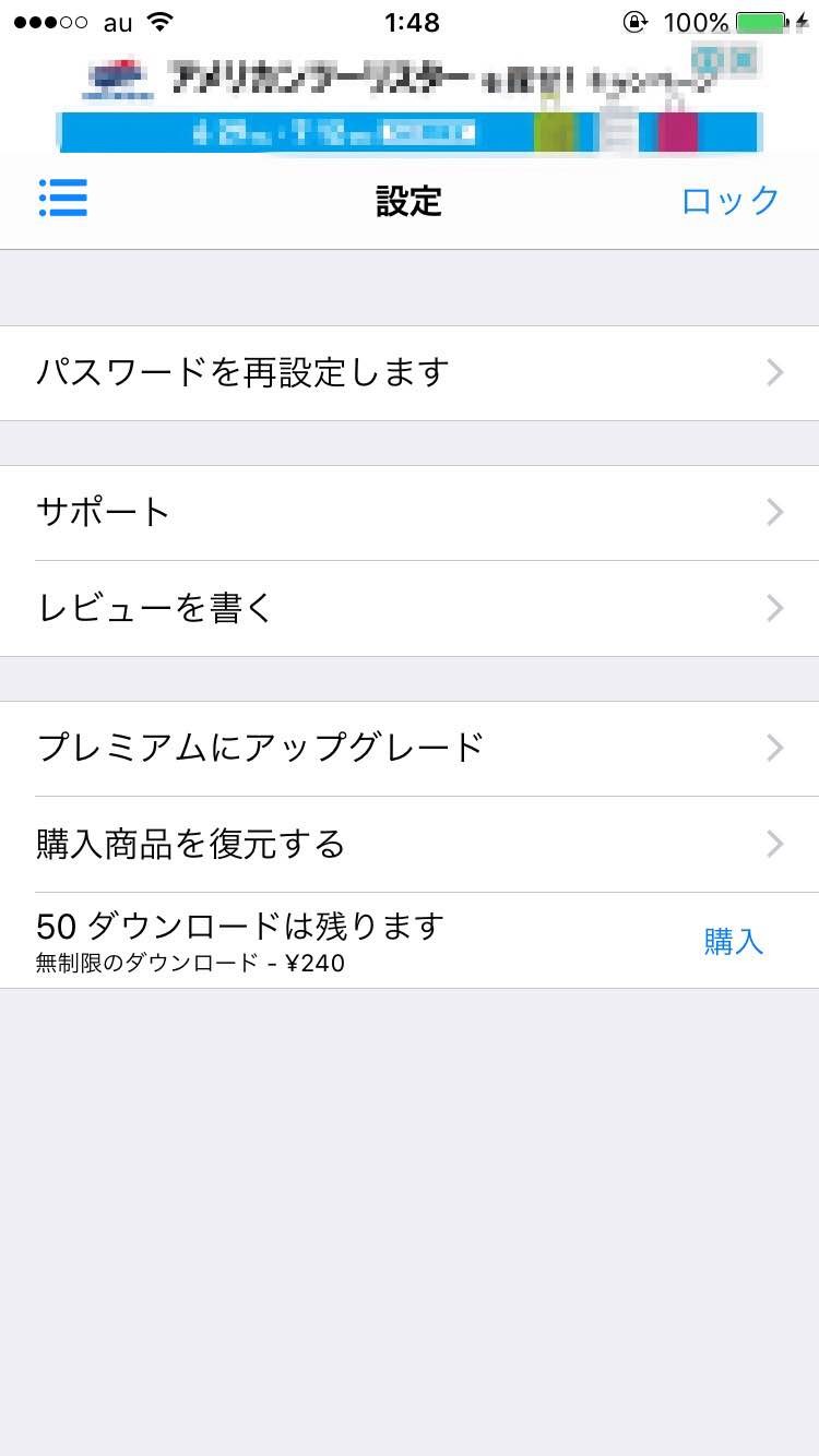 パスワードを設定するには、左上のメニューから「設定」へ進みます。