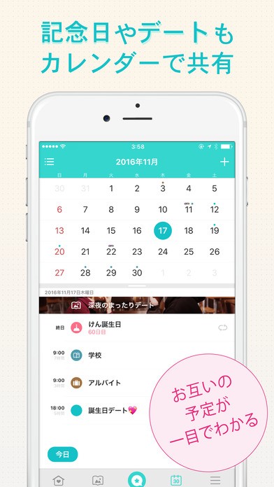 2人だけのアプリだから、カレンダーのスケジュールも共有できちゃいます!