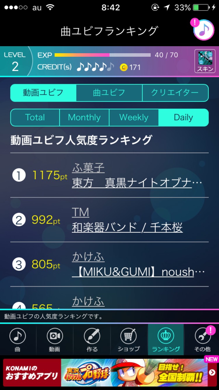プレイするだけじゃ物足りない人にはランキング機能がオススメです。人気のユビフはランキングにのるので、創作に自信のある方は人気No. 1を目指してみるのも楽しいですよ!
