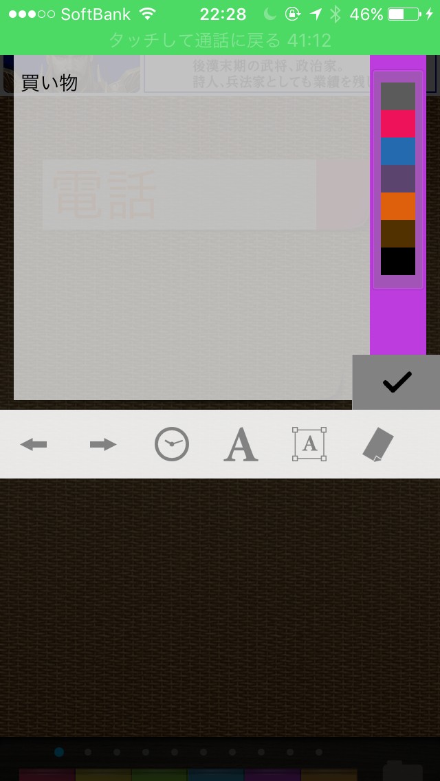 ②次にメモに書く文字の設定ですが、色・大きさ、すべて指でスクロールするだけで設定ができます。