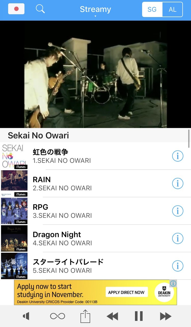 アプリを開くとランキング形式でリストが表示されています。右上に「SG」シングルと「AL」アルバムのボタンがあります。それをタップすると、ランキングが表示されますが、それぞれシングルとアルバムのランキングになって表示されます。シングルもアルバムもどちらもどの曲やアーティストが人気なのか一目でわかるようになっています。