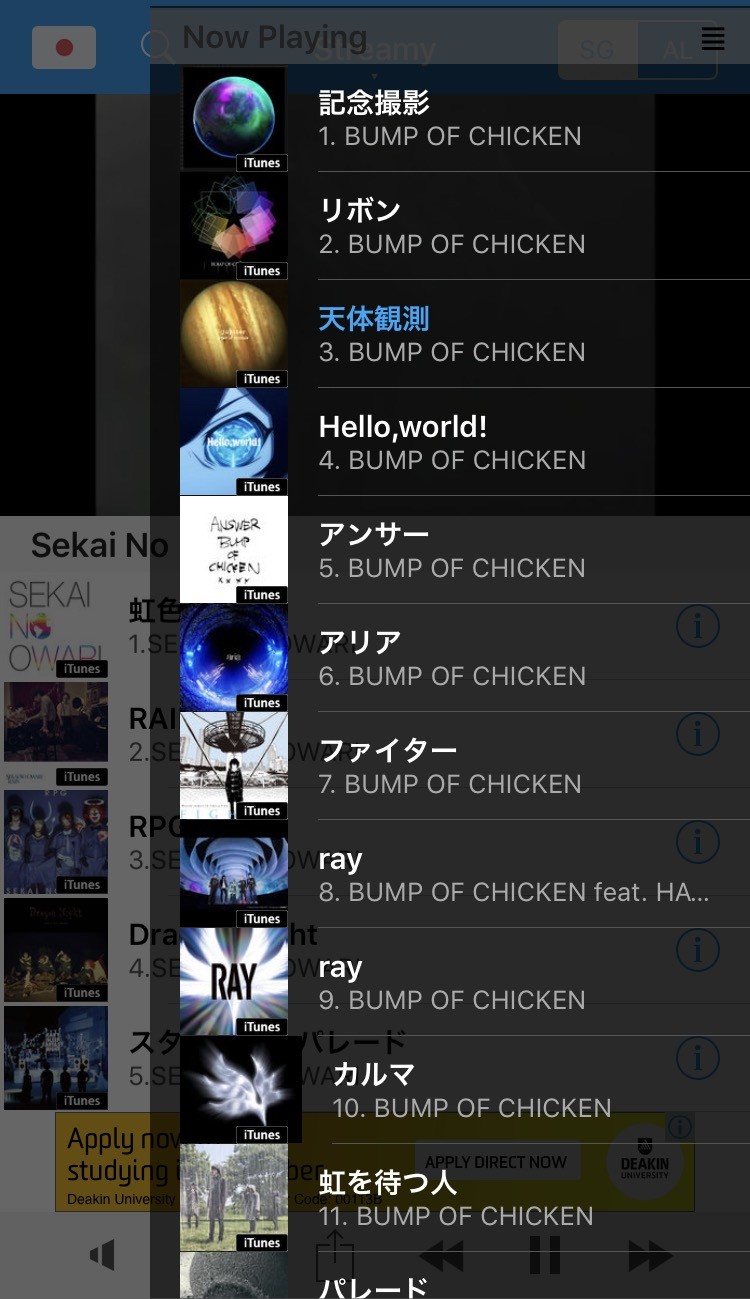 音楽が気に入ったらリスト上の左の画像をタップすると、Apple Storeなどストアにとんでいき曲を購入することができます。シングルだけではなくアルバムも買うことができます。