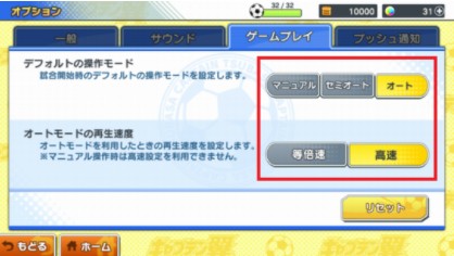 やり方ですが、まずはメニューからオプションに飛びます。そして、ゲームプレイの項目から操作モードをオートに変更してください。最後に、ゲームスピードを高速に変更すれば完了です。