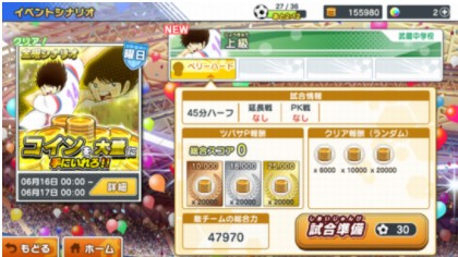 これを見れば分かる通り、上級イベントは一度に入手できるコインの総数が多く、スタミナ効率にも優れているため、なるべく上級を周回できるようになれるといいでしょう。