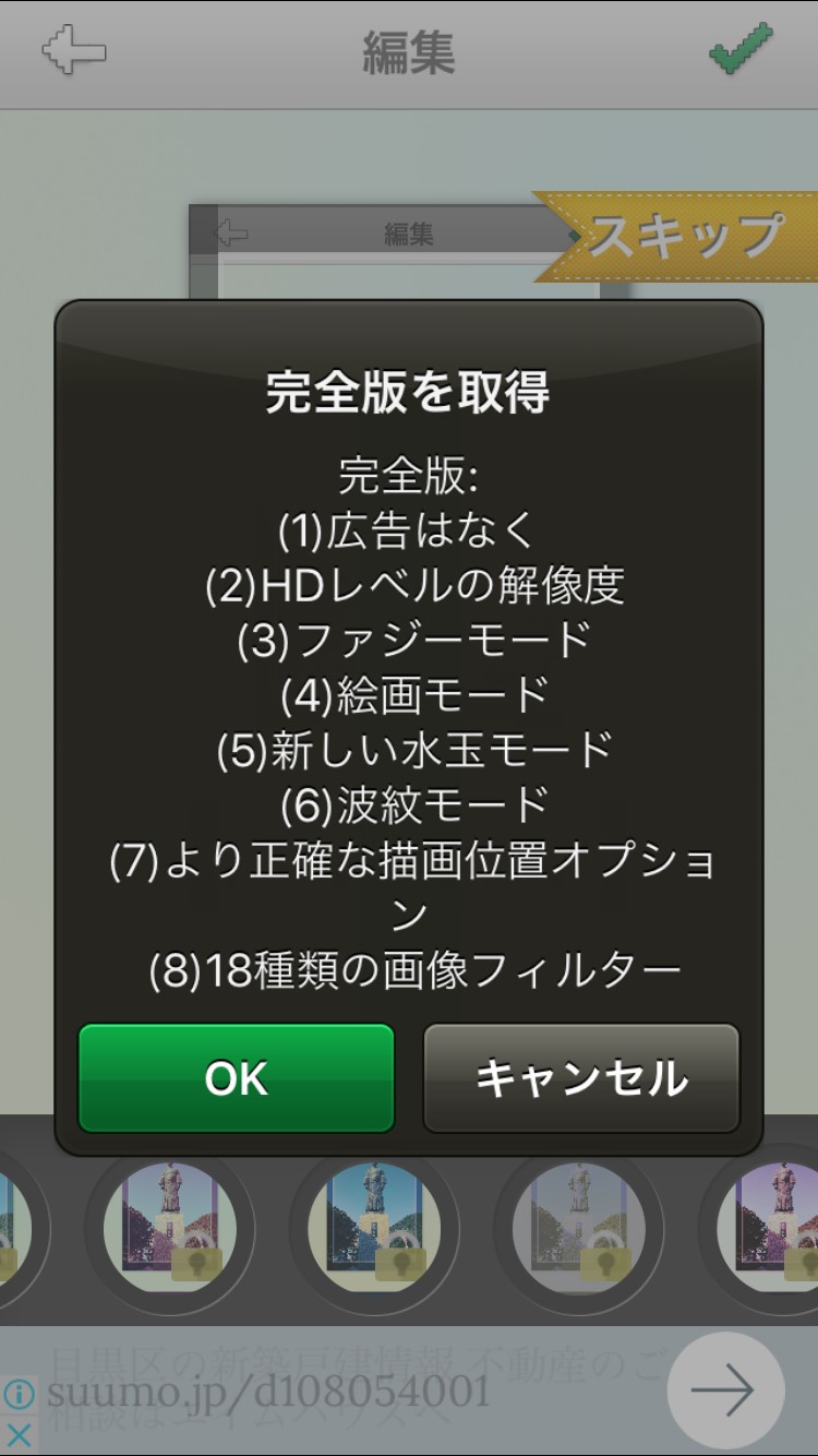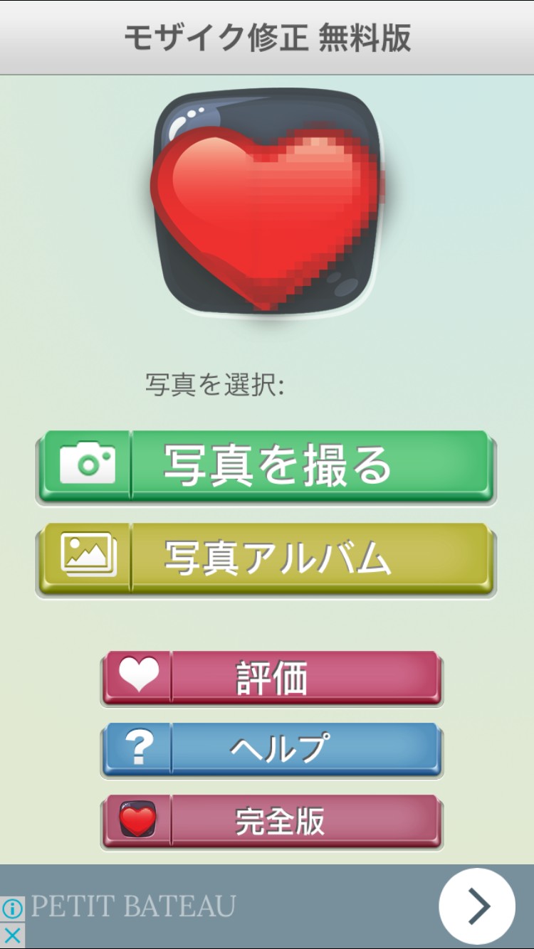 完全版にアップグレードすると、広告がなくなり、より多くのフィルターやモザイクを使うことができるので、