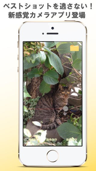 子供やペットが被写体のとき、撮影をしたいシーンがいつ来るかわかりません。そのシーンがきたらすぐにアプリを起動しましょう。それだけで、思い出は保存されます。また、アプリ起動中に画面の中のどこを触っても写真が記録されます。これなら、焦ってボタン以外の場所に触れてしまい撮影が失敗してしまうなんてこともありません。ホームボタンを間違って押してしまったときには、だいたいのアプリで保存されませんが、このアプリは保存されます。