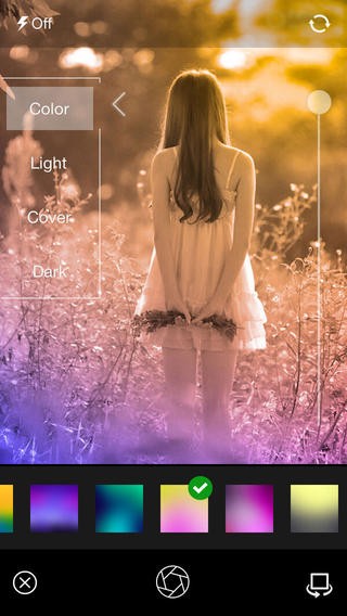 他の加工アプリでは、写真全体の色味を変えるものが多いですが「Colorful Pro」では派手なグラデーションカラーのフィルターをかけることができます。
