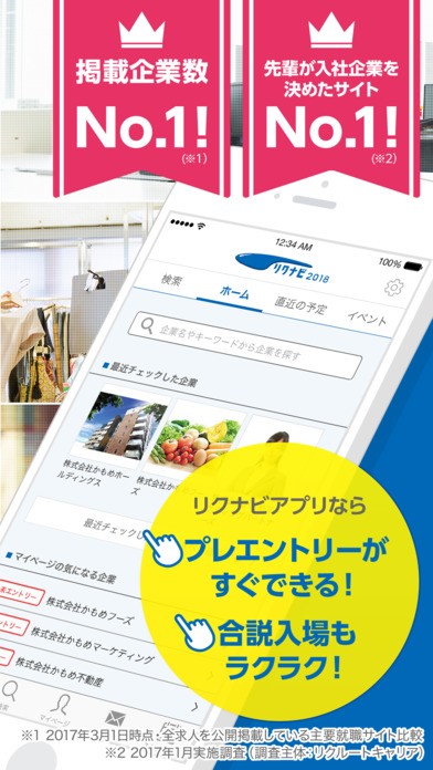 1. 「リクナビ2018 新卒向け就活アプリ(企業検索/説明会予約/自己分析/エントリーシート/面接対策)」でストレスフリーに