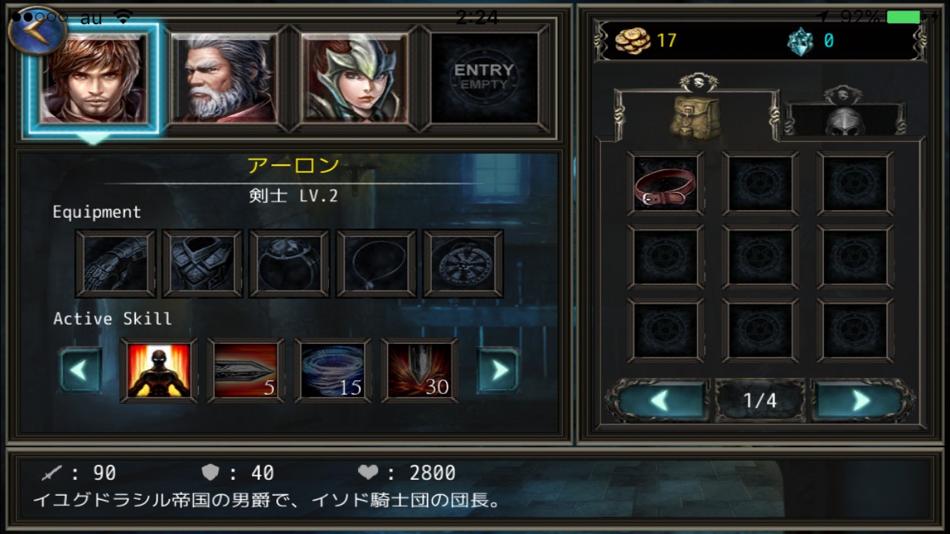 傭兵のアイコンをタップして、スキルのアイコンをタップするだけですので簡単です。