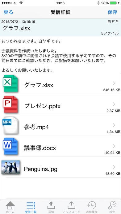 もちろん送るだけでなく、相手からのファイルを受信することも!