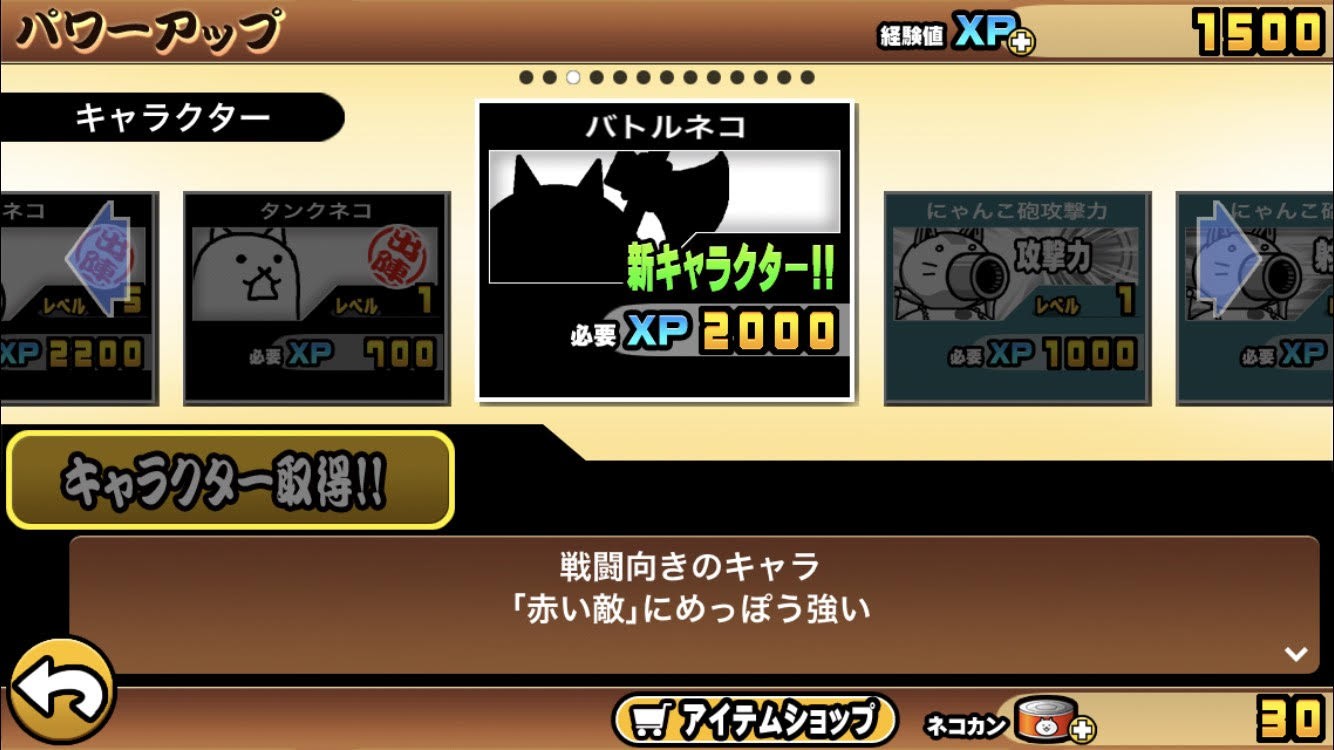 画面左下のネコをタップすることでネコのレベルをアップさせます。