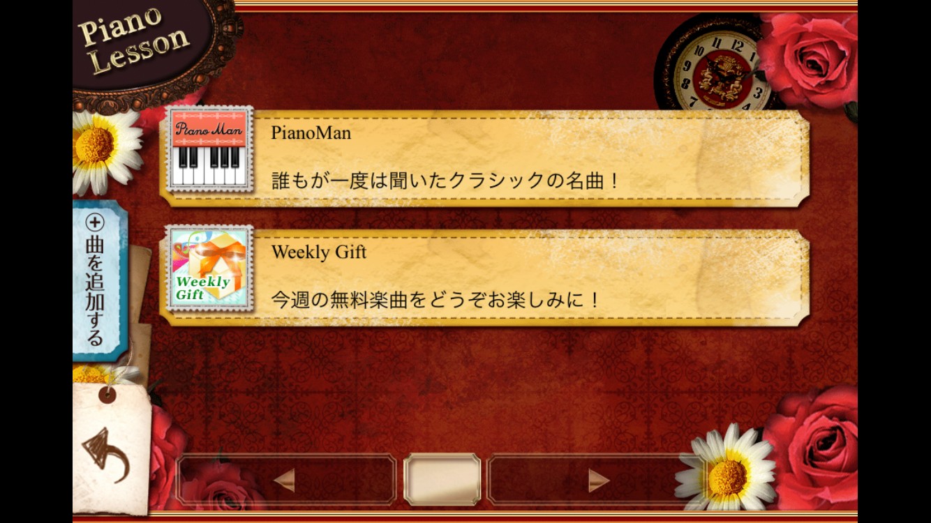 楽曲は、最初はクラシックの名曲が何曲か選べます。「カノン」「エリーゼのために」「G線上のアリア」など、まさに王道のクラシックなので、演奏しやすいと思います。楽曲は、1000曲を超えるようです。アプリ内のShopから購入可能です。「残酷な天使のテーゼ」「栄光の架橋」「君をのせて」などおすすめ曲が満載です。Shopから購入しなくても、毎週無料で楽曲が提供されるので、ぜひチャレンジしてみましょう。