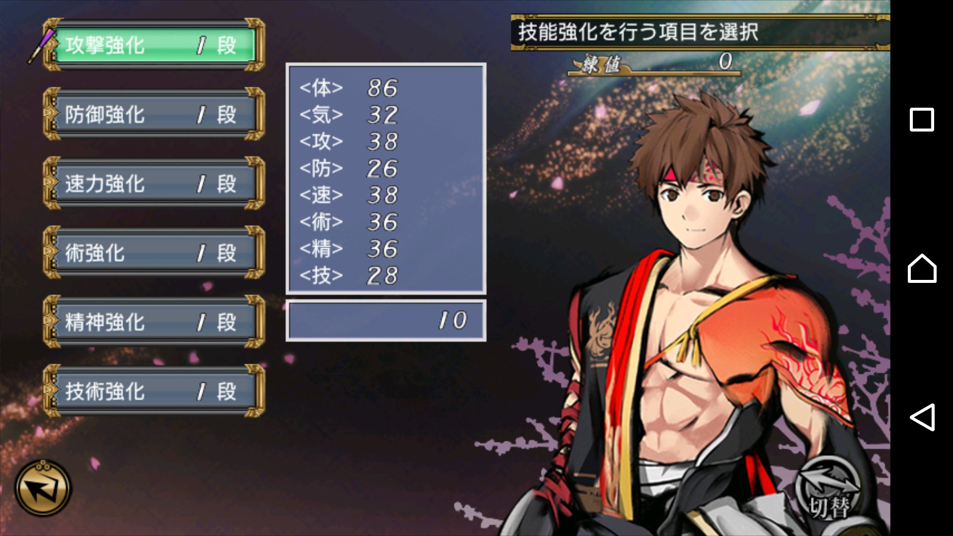 段、つまりレベルが上がった時に得ることが出来る「練値」を、メニューの能力向上からパラメーターに割り振って強化することが出来ます。