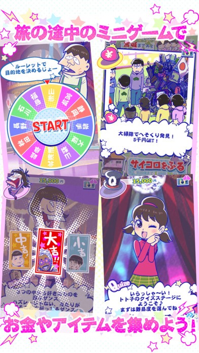 そう思い立った6つ子たちは、全国へ金集め旅に出るのでした。