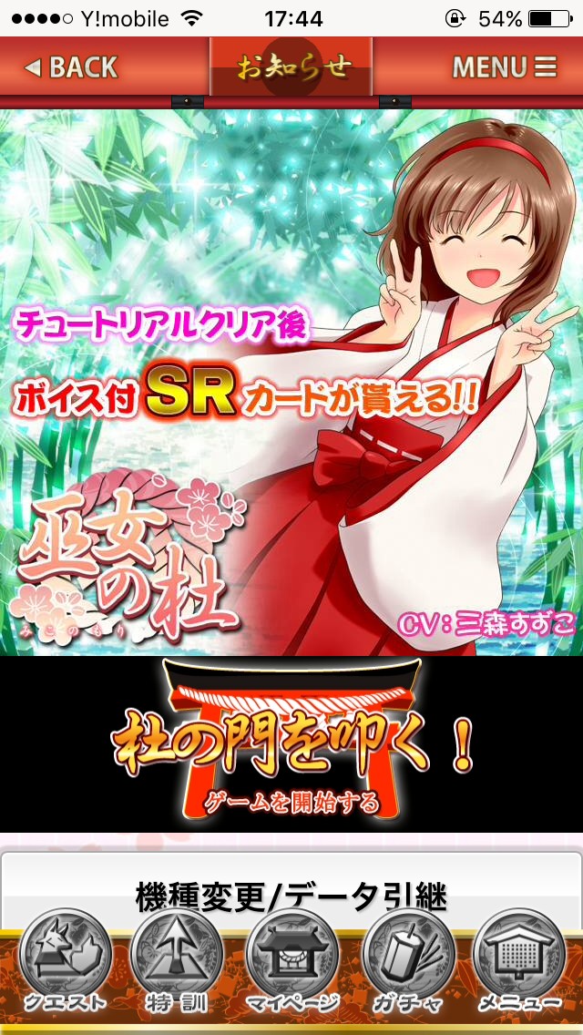 巫女の杜 人気声優による巫女少女と萌える神社育成ゲーム 巫女を育成する美少女カードRPG