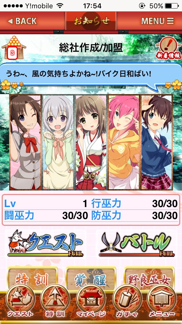 ガチャやクエストを通じてかわいい巫女候補たちを仲間にし、