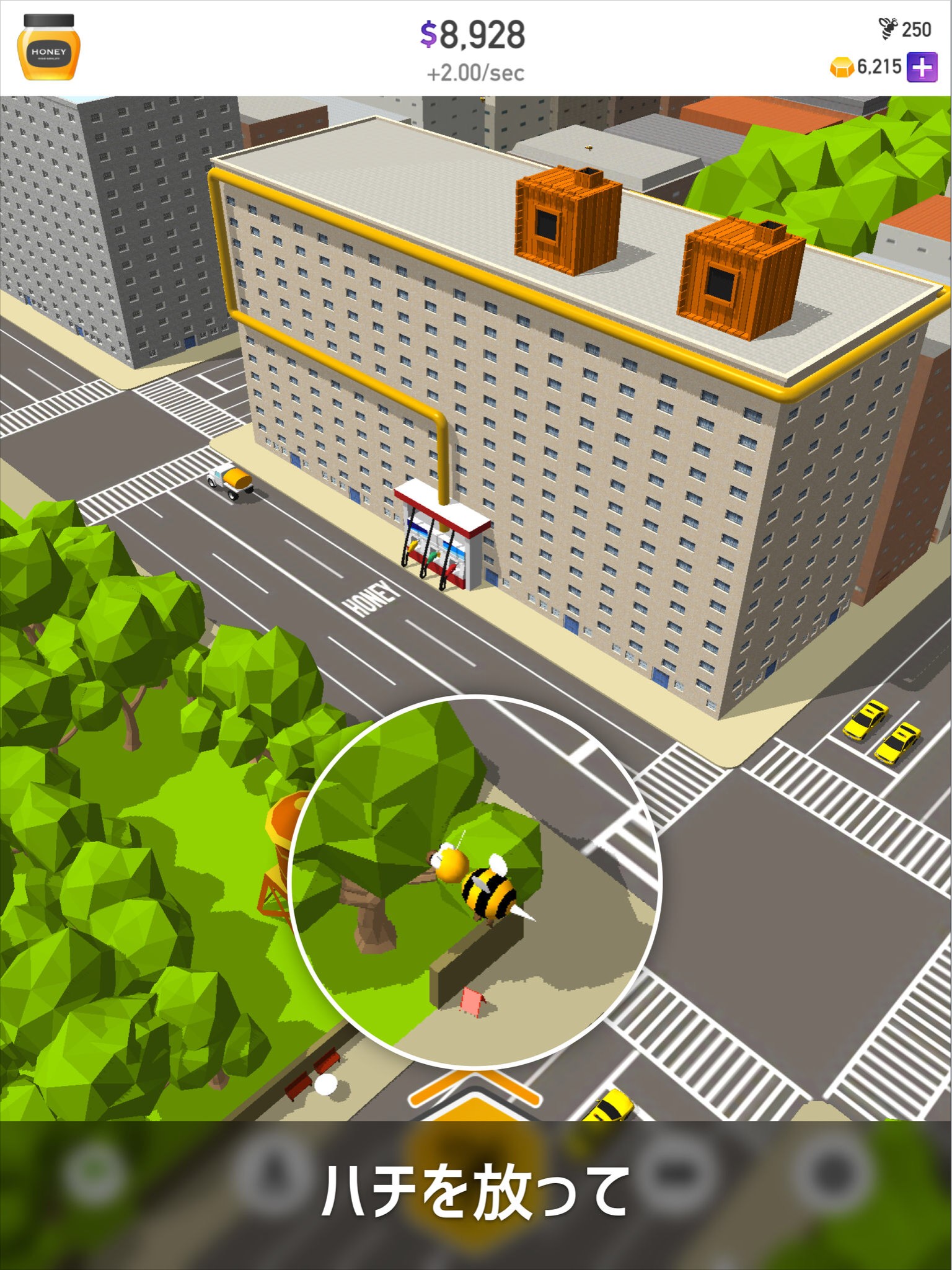 ハチを生み出し、ハチミツを集め、タンクローリーで出荷。集まった資金で養蜂箱やタンクローリーなどをアップグレードして、生産性を上げていく…とても単純なゲームですが、これがハマるとやめられない。