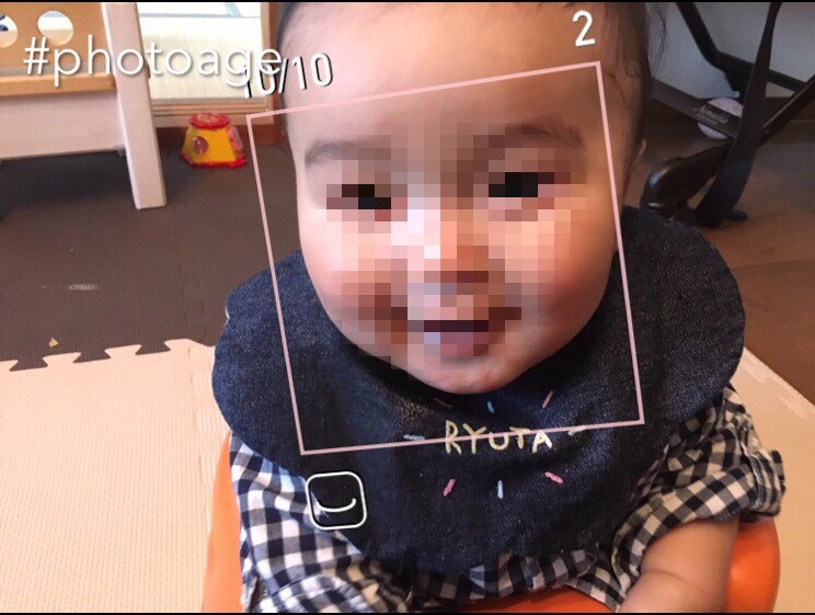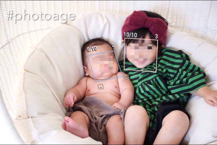 ・認識された顔は、周りが四角で囲まれており右上にでている数字が判断された年齢