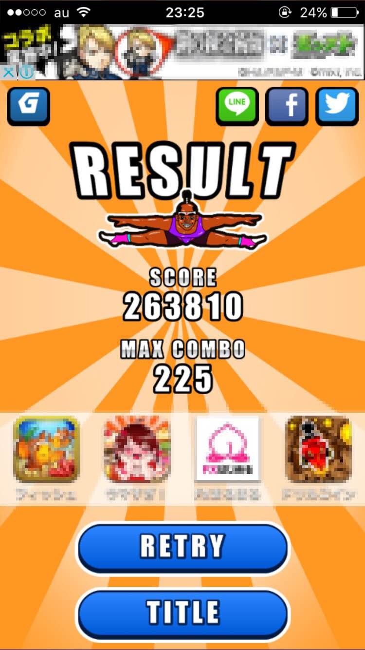 全ステージクリアするとスコアとMAXコンボが表示されます。