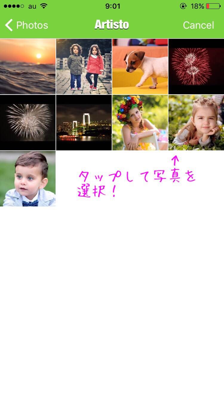 加工したい写真を選びます。