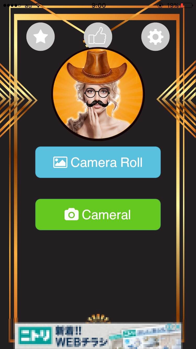 画面上部のそれぞれのアイコンは、星がアプリストア、Goodボタンがその他アプリ紹介、歯車マークが問い合わせなどの設定画面を見ることができます。