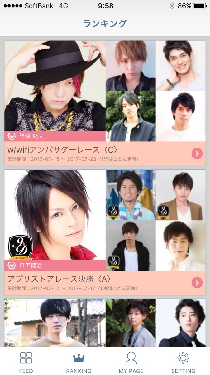 以上です。5つのステップのみで細かい登録はありません。Darling!を見つけLOVEを押すだけなので簡単ですよね。「FEED」の隣には「RANKING」があり、今注目されているDarling!たちが掲載されています。