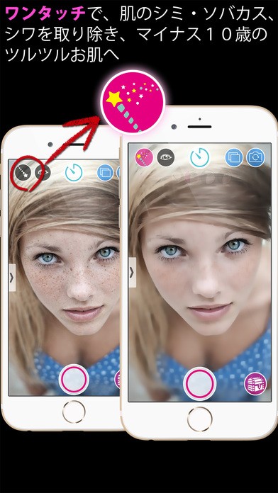 自撮り写真専用のカメラアプリです。様々なフィルターなどの加工を使って誰もがうらやむ写真を撮ることが出来ます。まず驚きなのは美肌やフィルターなどの加工の種類の多さです。撮った写真を加工するアプリの場合だと時間をかけて加工するので種類も多い物が結構ありますが、このアプリは自撮り写真を撮るためのアプリです。それなのにこの種類の多さには驚かされました。フィルタだけでも70種類近くあります。でも、あまり多くても設定などの作業が面倒なら使いにくいですよね。安心してください。このアプリは使い方もとってもシンプルで簡単です。フィルタを使いたい時は左右にフリックして変更することが出来ますし、美肌加工やデカ目加工もタップ一つの簡単操作です。これなら、手間もかからずにスマートに自慢の自撮り写真を撮ることが可能になりますね。