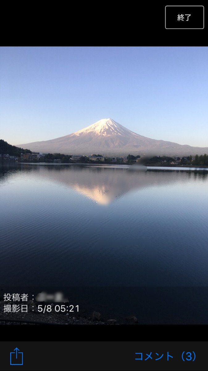 このアプリの楽しみ方は、富士山の絶景写真を投稿、閲覧できるだけではありません。例えば、投稿写真へのコメント機能があります。この機能を使えば、自分が投稿した写真へのリアクションが見れたり、コメント欄で情報共有したりもできて、富士山の楽しみ方がより一層拡がります。他には、気に入った写真をSNSで共有したり、メールで送信する機能があります。「きょうの富士山」には、思わず人に自慢したくなるような珍しい写真や面白い写真が数多く投稿されています。中には、プロの写真家が撮影したようなクオリティの高い写真もあります。これらの写真を見て、その感動をもっと多くの人に拡散したくなったときは、このSNS共有機能、メール送信機能が役に立ちます。富士山に登ったことがある人もない人も、日本が誇る富士山の美しさを、ぜひ多くの人と共有してみましょう。