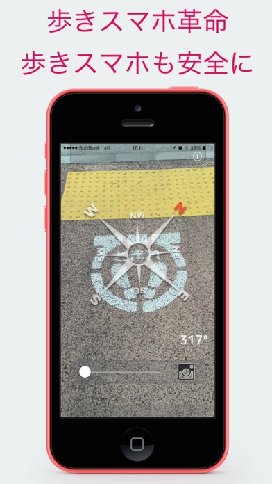 歩きながらスマホを使うのは危険なので、『スケスケコンパス』で方角を確認するときは、立ち止まってお使いください。