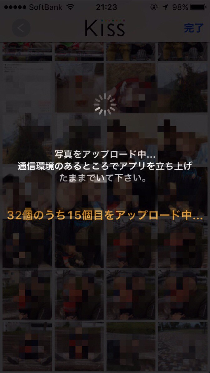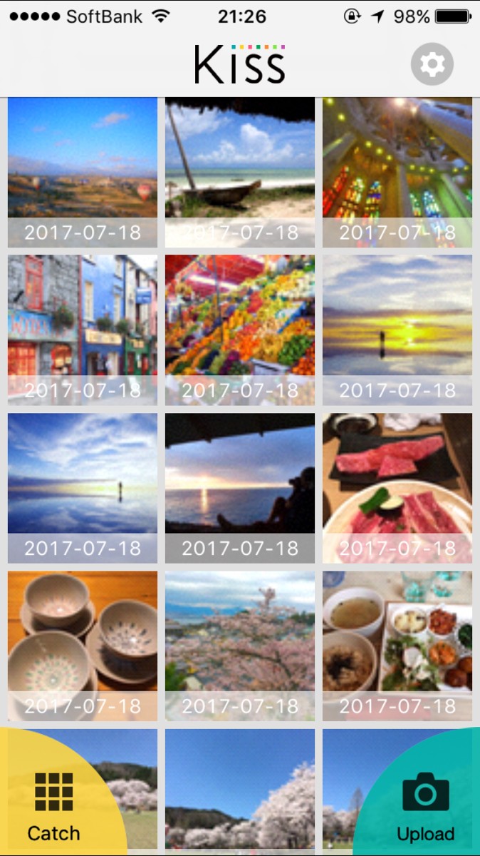 「Kiss」は写真をアプリ上にアップロードし、近くにいる人と共有できるアプリです。