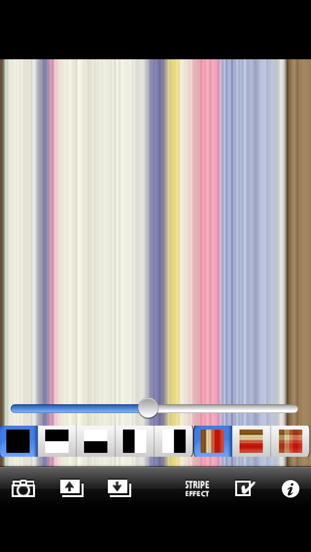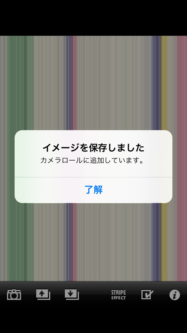 アルバムに保存してある写真を使用するときは、「上矢印」ボタンをタップします。カメラロールからストライプ柄にしたい写真を選択すると、すぐにストライプ柄に変換されます。