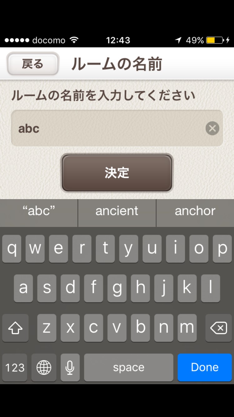 4.ルームの名前を入力し、「決定」をタップ