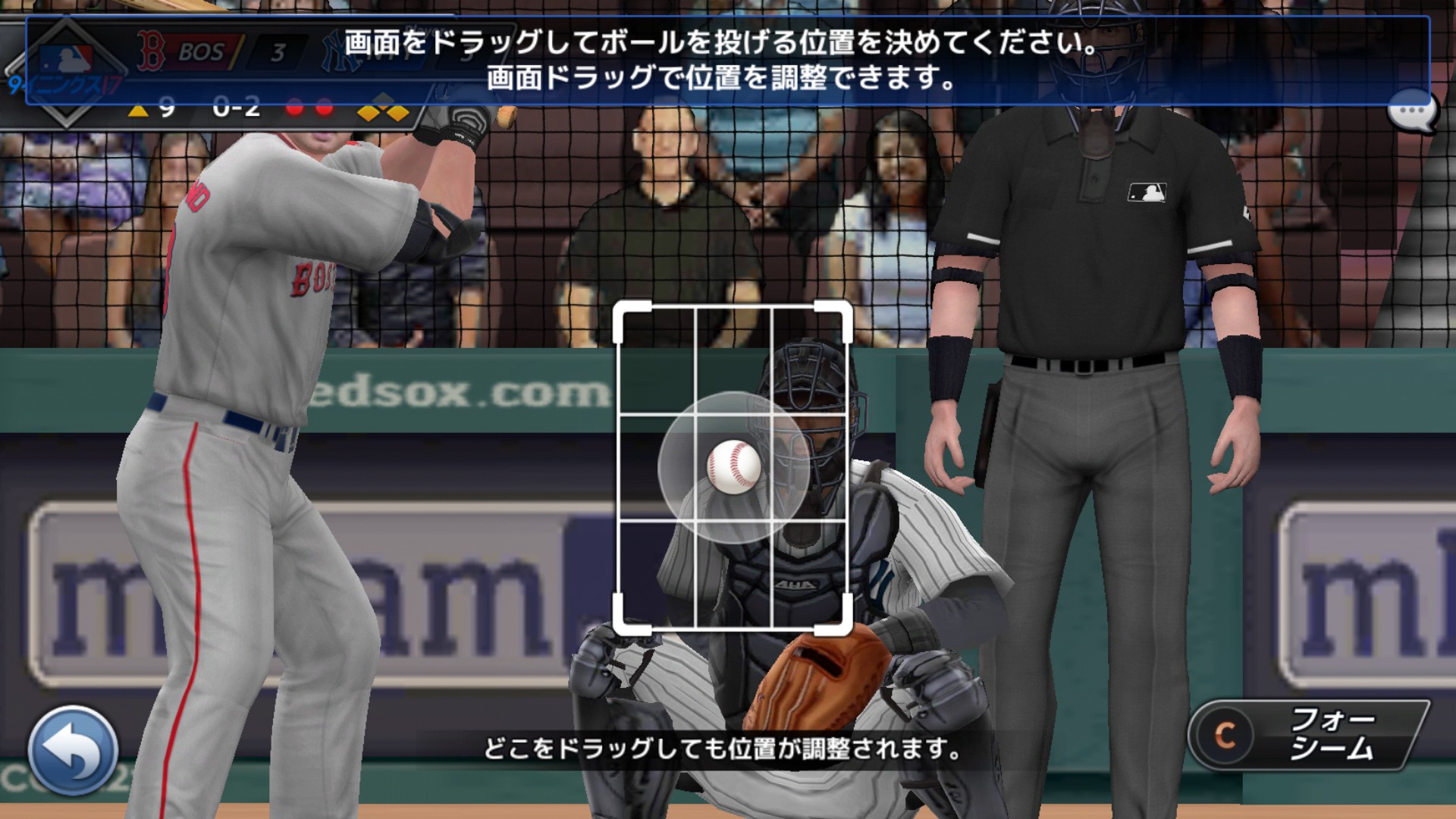 投げる位置を画面をドラッグして決めて投球。(画面どこでもドラッグし移動可能)