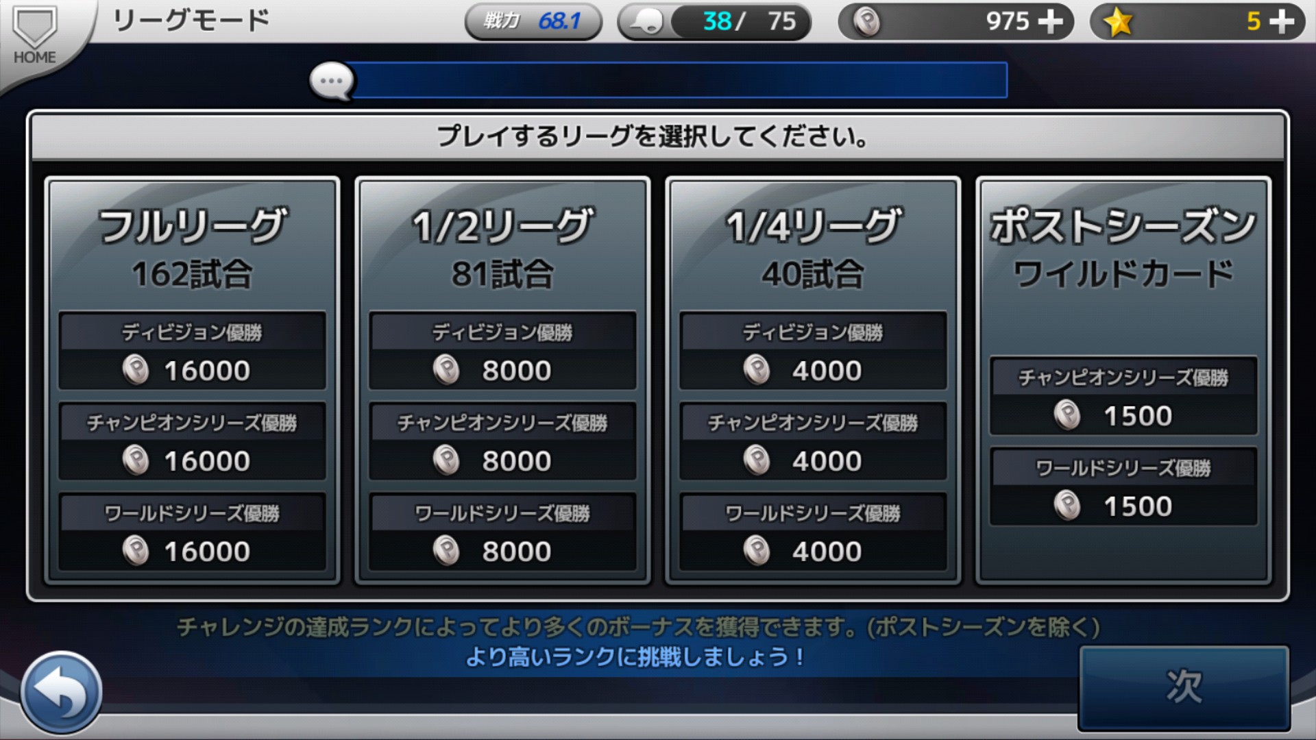 このゲームは元となるチームを「アメリカンリーグ」と「ナショナルリーグ」の各チームから選んで「自分のチーム名を入力」しチームを創設して下さい。