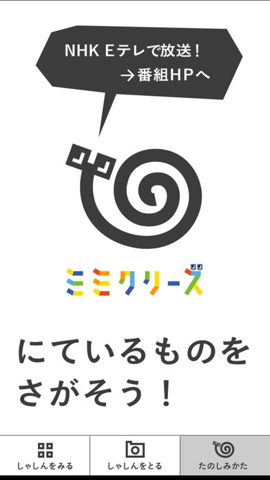 「NHK ミミクリーカメラ」は、NHK・Eテレ(子供向けの教育番組)の「ミミクリーズ」公式アプリです。