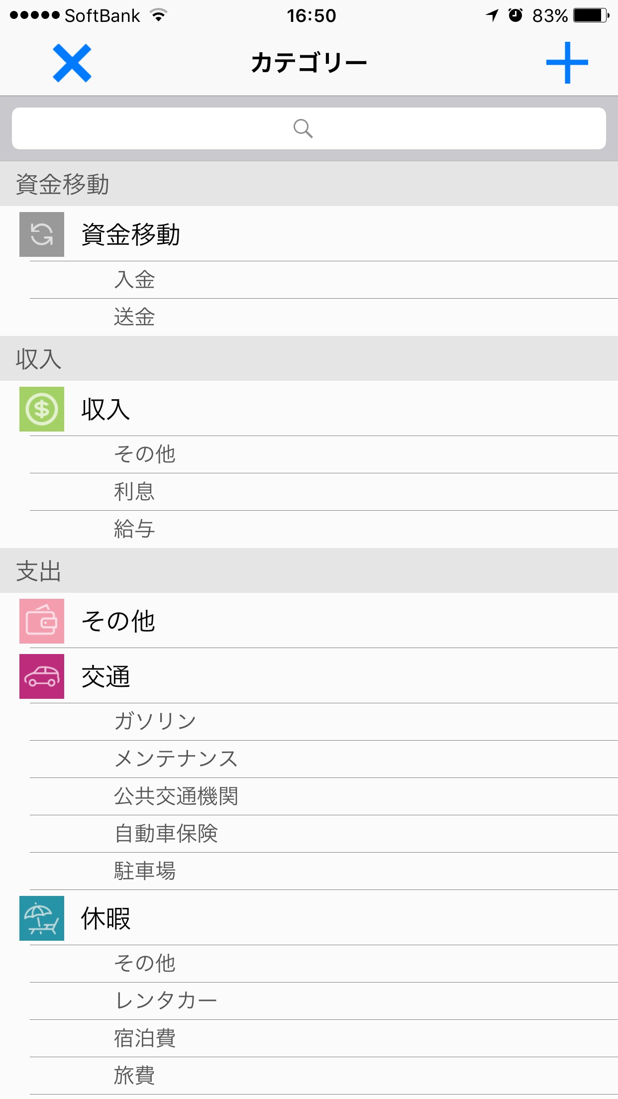 適したカテゴリーが無い場合は、画面右上の「+」ボタンをタップすることでカテゴリーを追加できます。