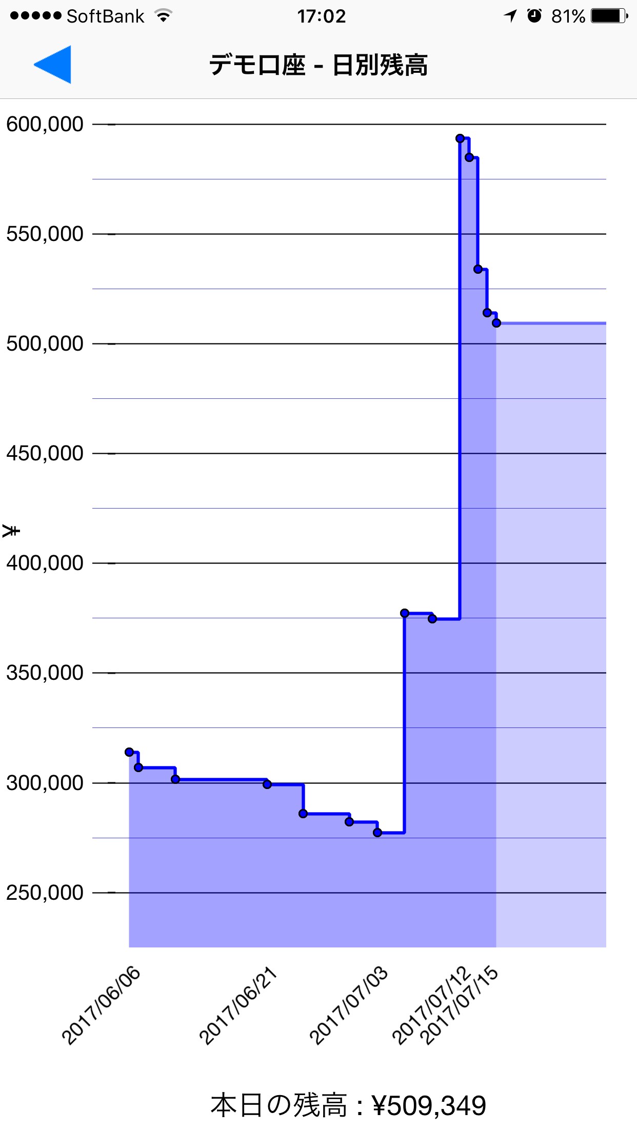 日別残高、月別残高、日付別残高のカテゴリーで残高状況が推移図で表示されます。