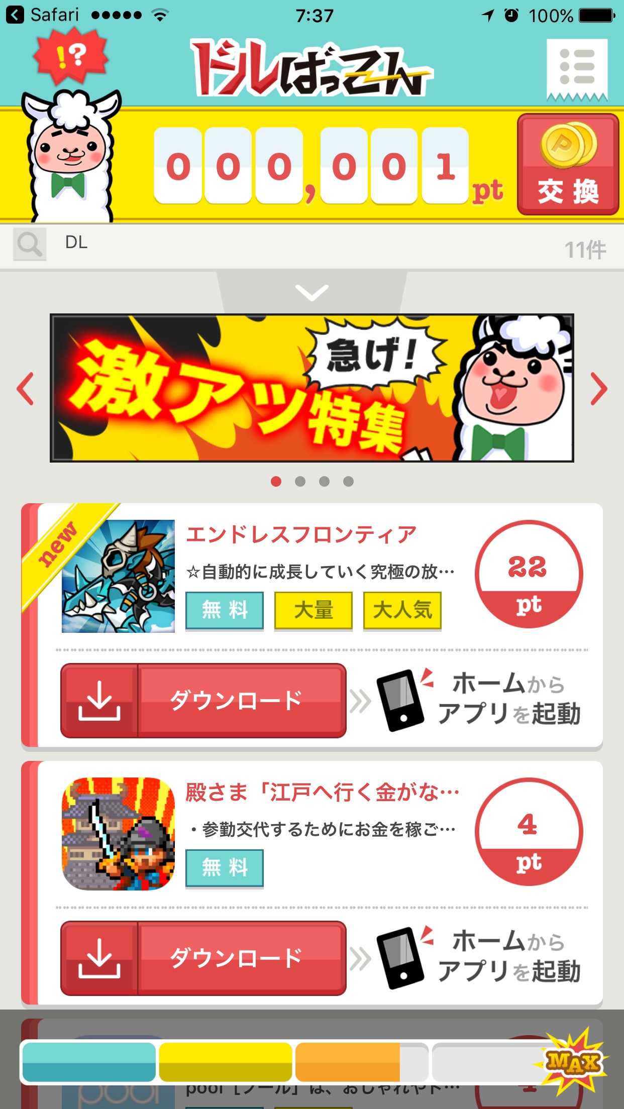 今回紹介する「毎日楽しくお金を貯てお小遣い稼ごう~ ドルばこ~ん!!」もアプリのダウンロードやサービス利用によりポイントが