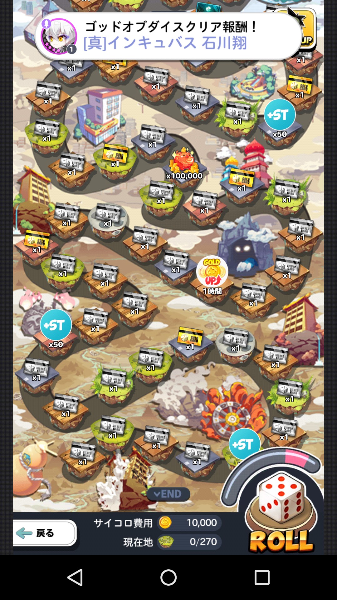 ゴッドオブハイスクールはおまけも充実しています。まずはゴッドオブダイス、大げさな名前をつけていますが単なるすごろくです。初回はダイスを1万ゴールド支払って、