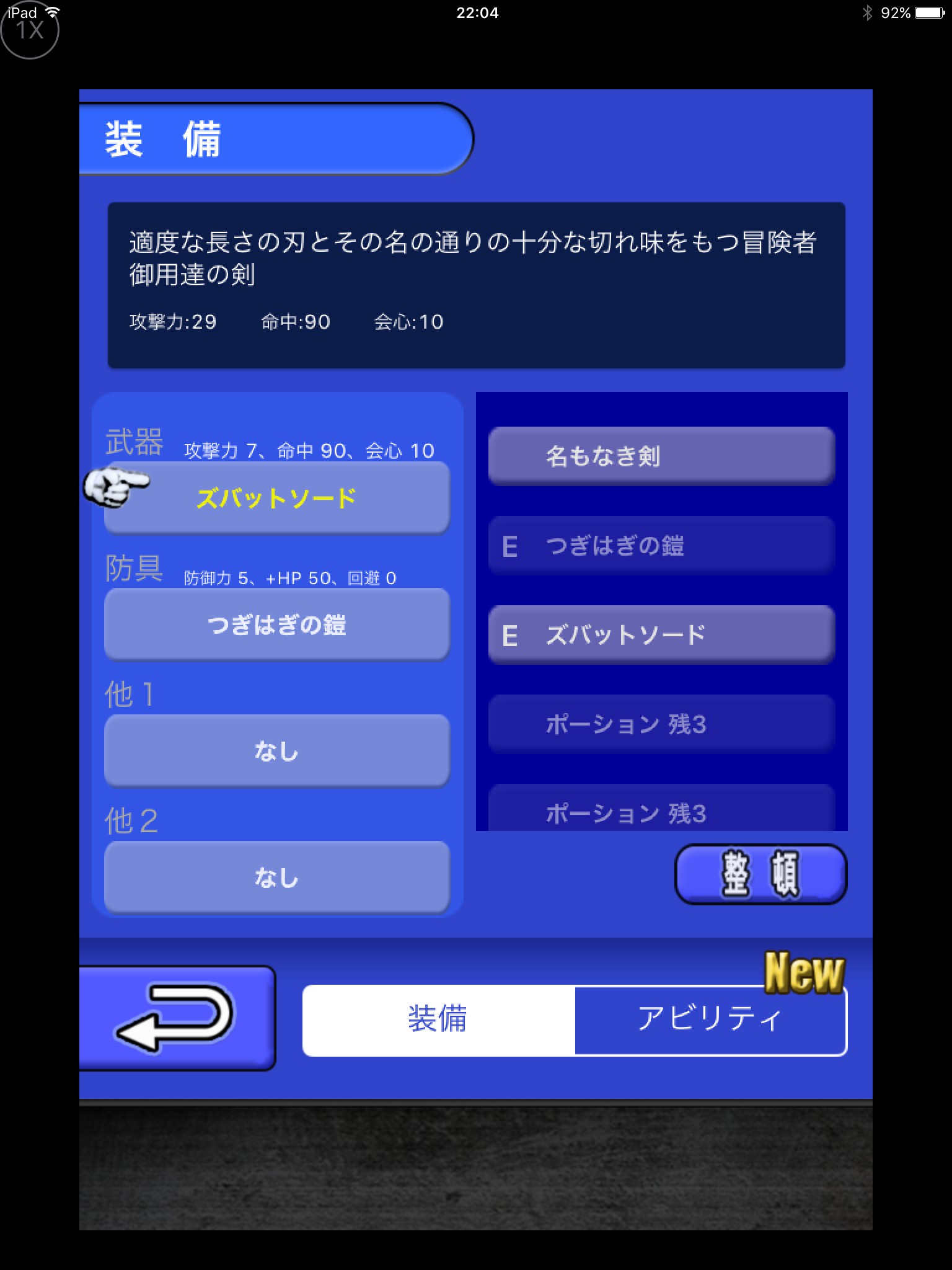 レベルを上がるとステータスポイントの他にアビリティを覚えることがあります。ポケットクロニクルでは魔法が使えません。アビリティは自動的に発動するもので最大4つまで装着できます。