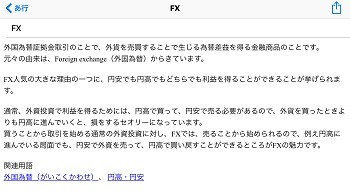 このアプリの辞書を使いながら、FXニュースを読めば勉強もはかどりますね。